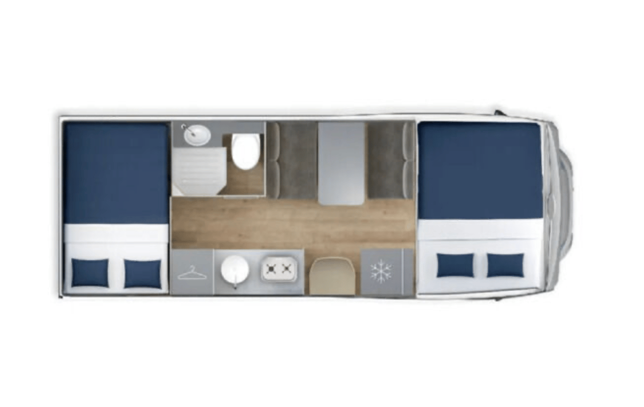 Esant poreikiui, suformuojamos dar dvi papildomos miegamos vietos vietoje keleivių sėdimos dalies ir stalo.