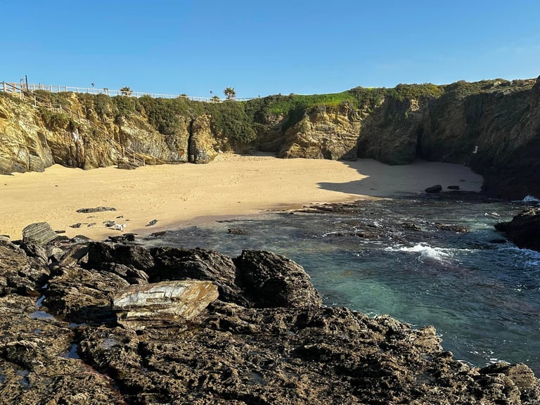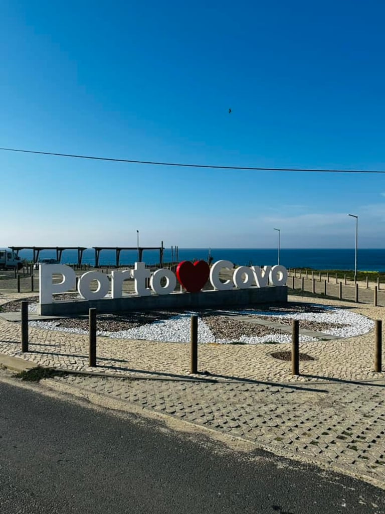 Po įspūdingos Algarvės pakrantės pajudėjome link Lisabonos, tačiau nusprendėme važiavimo atstumą išskaidyti į dvi dienas. Porto Covo - apie 1000 gyventojų turintis miestelis nutolęs nuo Lisabonos 170 km. Pasirinkome jį tiesiog kaip tarpinį sustojimą pakeliui į Lisaboną. Miestelis prie vandenyno, labai labai tvarkingas ir, panašu, kad sparčiai augantis, nes daug naujai statomų namų. Jei ieškote kažko išskirtinio ar ypatingų lankytinų vietų, šiame mieste to nerasite. Tačiau jei norisi vandenyno, ramybės ir jaukumo, tai Porto Cavo puikus pasirinkimas. Mieste yra viena pagrindinė alėja, kuri vakare dar kiek šurmuliavo, nes čia pilna kavinių ir restoranų, kai kuriuose beveik visi staliukai buvo užimti. Tačiau dienos metu labai ramu ir tuščia. Visi namai tvarkingi, balti, dekoruoti mėlynomis juostomis. Yra keli smėlėti paplūdimiai, nors didžioji dalis kranto uolėta. Patogūs dviračių takai, nuorodos į haikinimo maršrutus pagal pakrantę. Pakrantėje yra net kelios stovėjimo aikštelės ir jei bangų ošimas ir daužymasis į uolas jūsų miego netrikdo, drąsiai galima miegoti pakrantėje. Išvažiuojant pamatėme, kad keli šimtai metrų už miesto pakrantėje buvo didžiulė aikštelė pilna kemperių. Panašu, kad čia renkasi mėgstantys banglentes ar kitą vandens sportą. Ir tokiau pakrantėje tokių vietų sustoti kemperiui su vaizdu į vandenyną buvo tikrai nemažai.