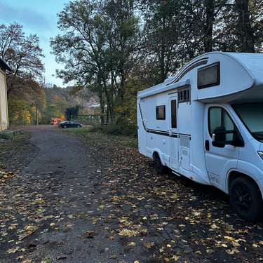 Nakvynės sustojome ramioje vietoje, gyvename rajone (5-7min važiuoti nuo centro). Vietą radome per park4night appsą. Žiauriai gerai, visada naudojame.