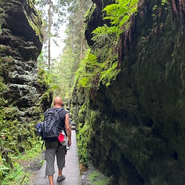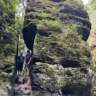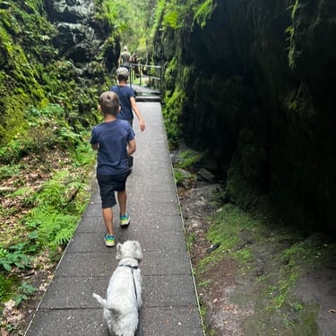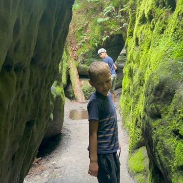 Visai šalia yra kitas maršrutas - Schwedenlocher. Apie šią vietą informacijos daug mažiau, nors nuorodas į vaikščiojimo trasas yra. Pradėjus eiti nuo parkingo visą laiką leidžiamasi laiptais žemyn. Kadangi kelias eina mišku, drėgna ir kažkiek vietomis slidu. Visa trasa- samanomis apaugę medžiai ir uolos, įvairūs tarpekliai. Mums ir vaikams labai patiko. Grįžti atgal galima kitu keliu pagal mažą upelį, tada nereikia kopti laiptais į viršų. Maršrutą geriau pasižiūrėti žemėlapyje iš anksto, nes ryšio miške beveik nėra. Mes įveikėme kelis kilometrus, bet trasa skirstosi į kelias puses, tad mėgstantiems vaikščioti ir gamtą čia veikti yra ką.