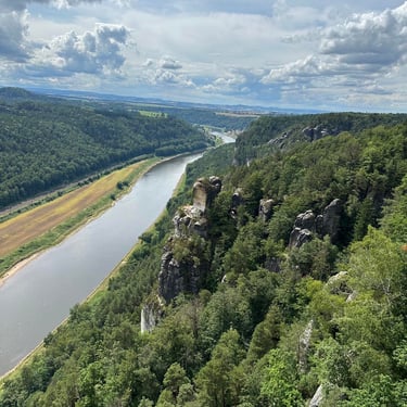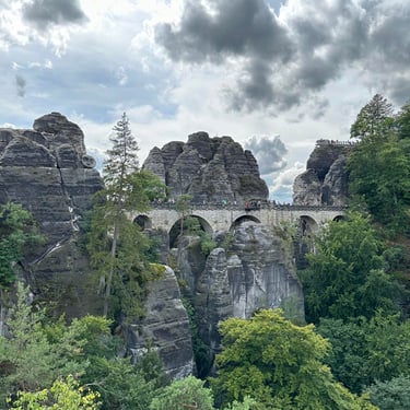 Šiandien dieną skyrėme aplankyti Saksonijos Šveicarijos nacionalinį parką ir Bastei uolas. Vieta tikrai verta dėmesio ir rekomenduojame - aukštos tarpeklių išraižytos uolos, kuriomis vaikščioti padaryti takai ir tilteliai. Nuo jų fantastiškas vaizdas į uolas arba Elbės upės slėnį.